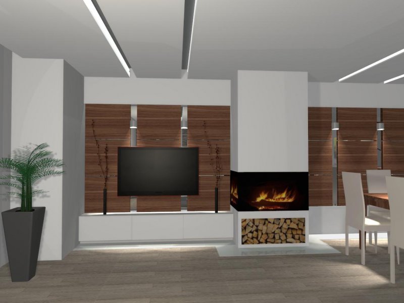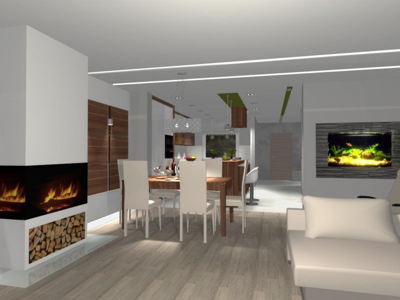 A comprehensive design for a 140 m² house, which included the layout of the living room with a kitchenette and bathroom.