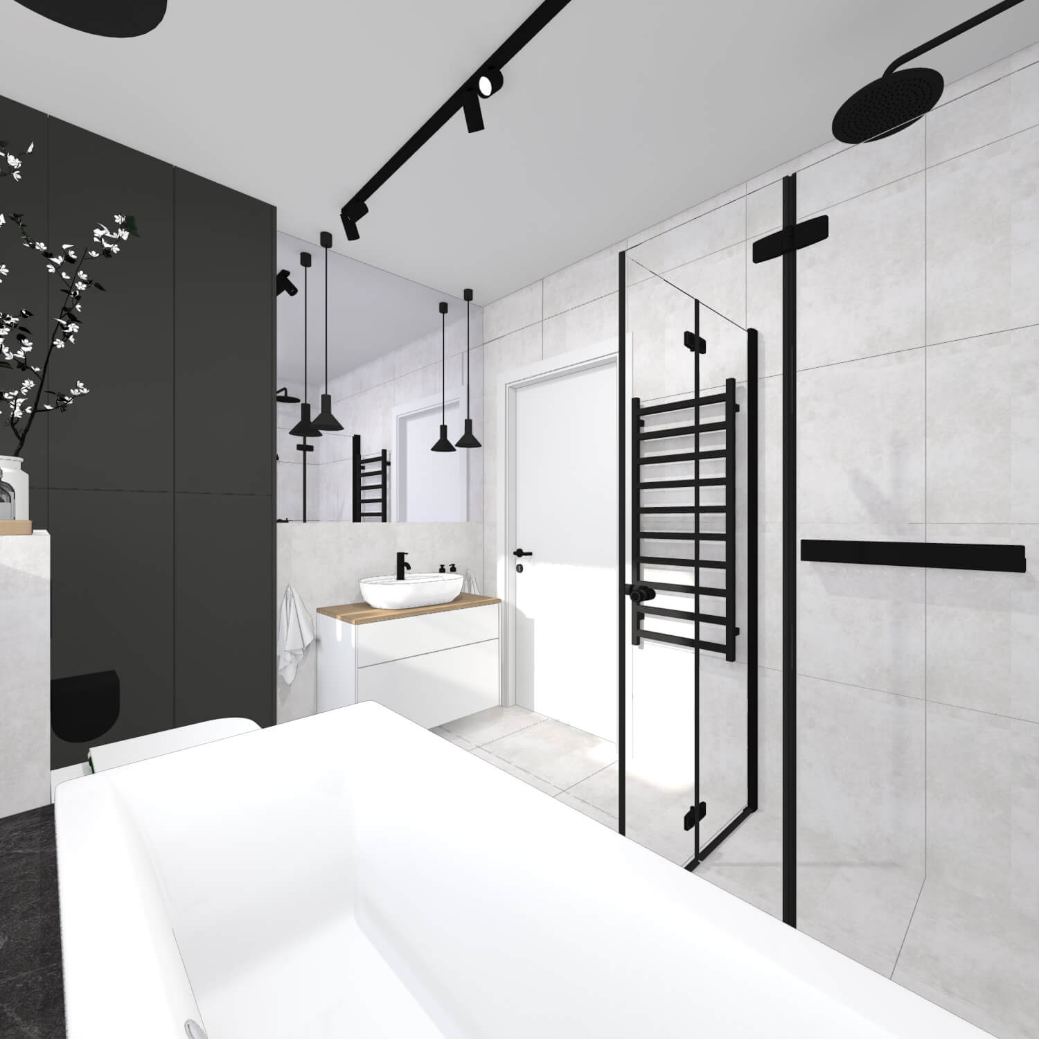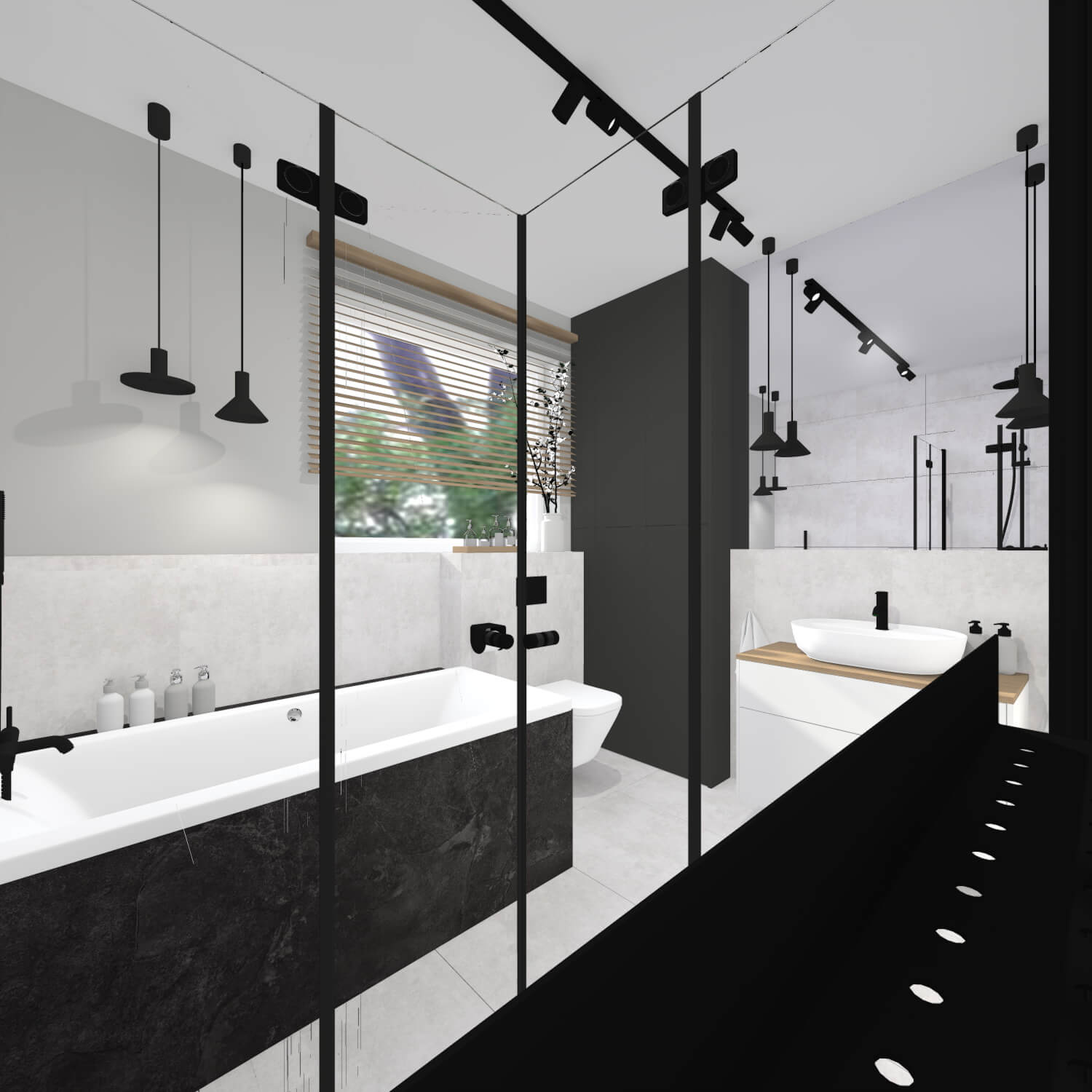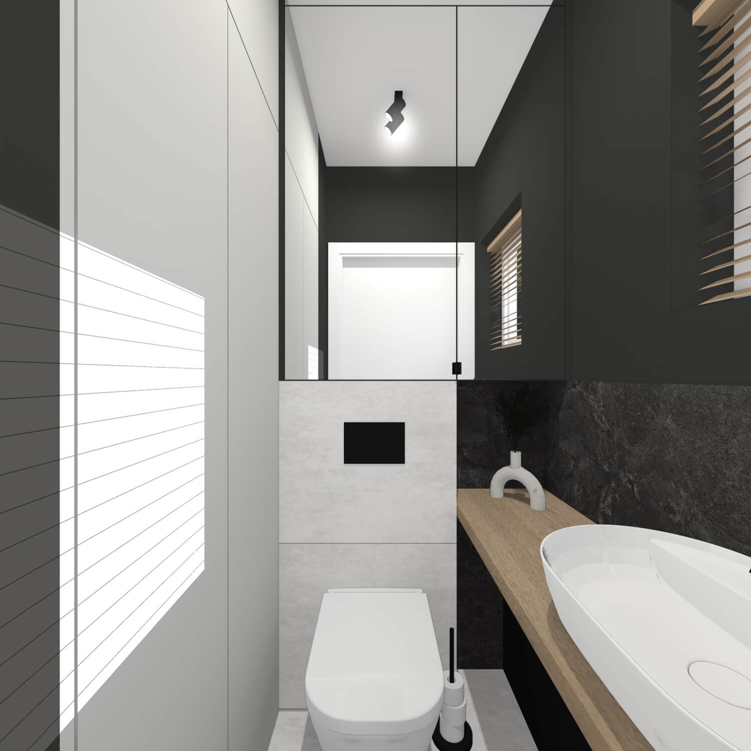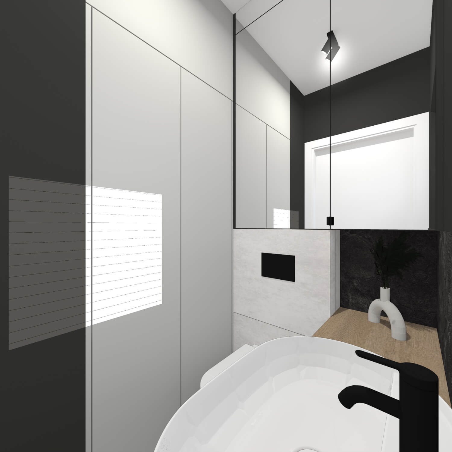 Kompleksowy projekt aranżacji wnętrza o powierzchni 99m2, który łączy nowoczesny design z industrialnymi akcentami. Realizacja objęła projekt salonu z aneksem kuchennym, pokoju dla syna oraz łazienki.