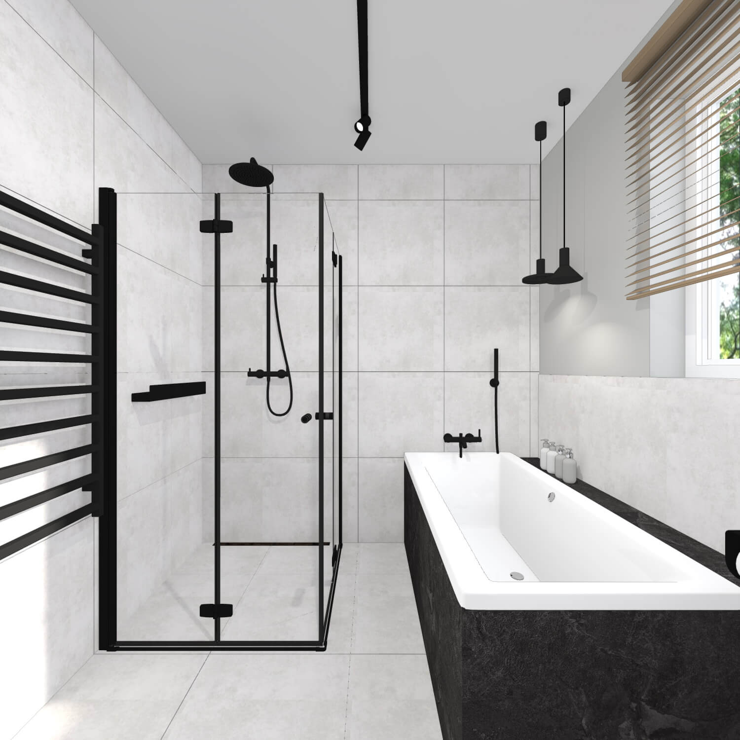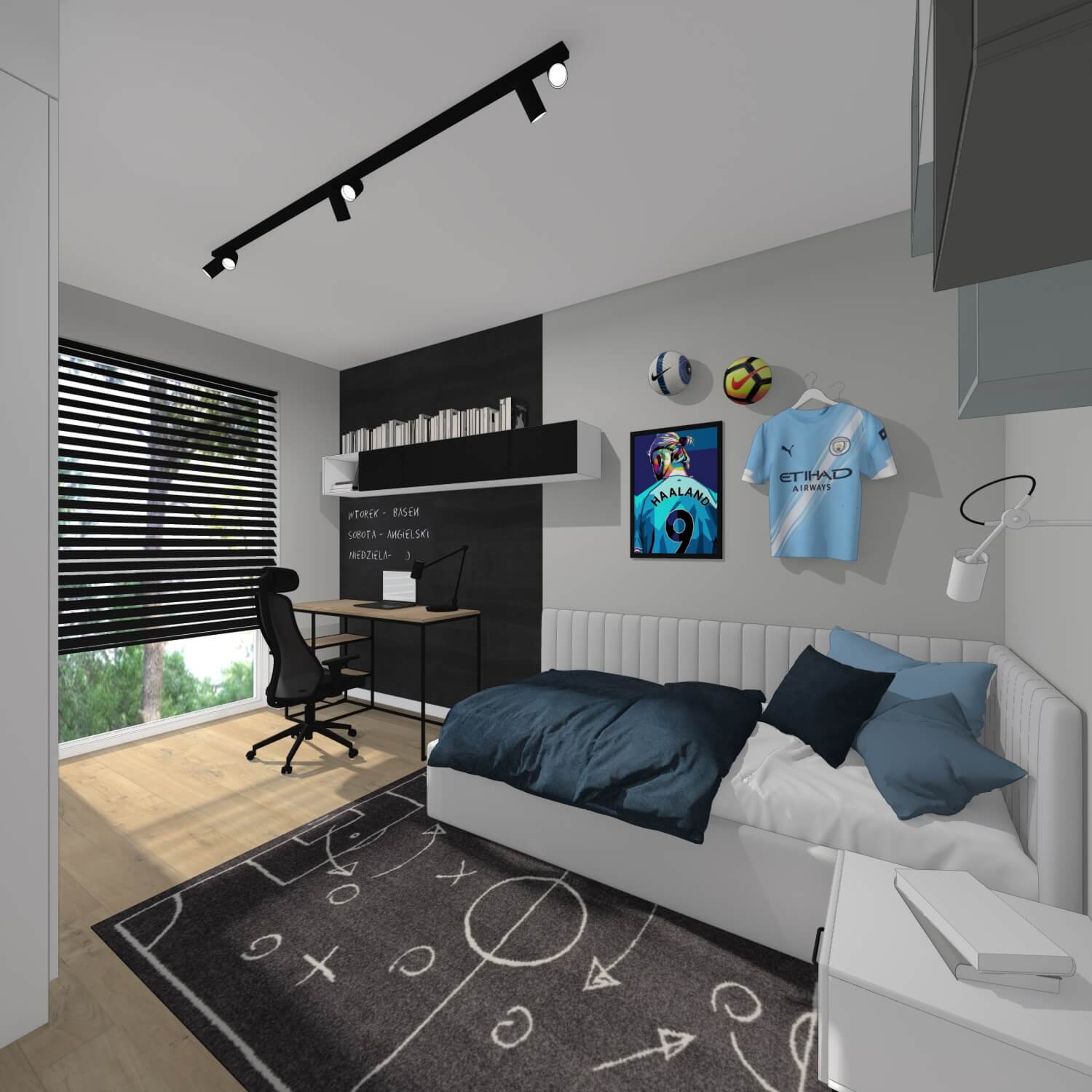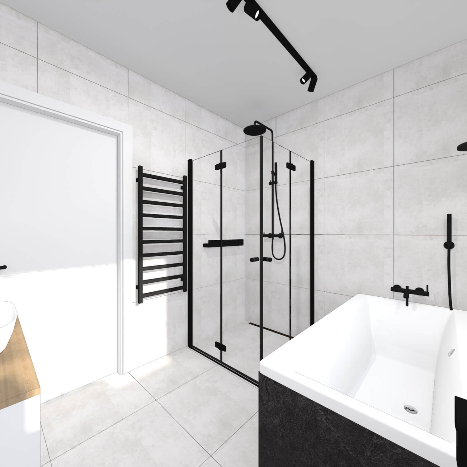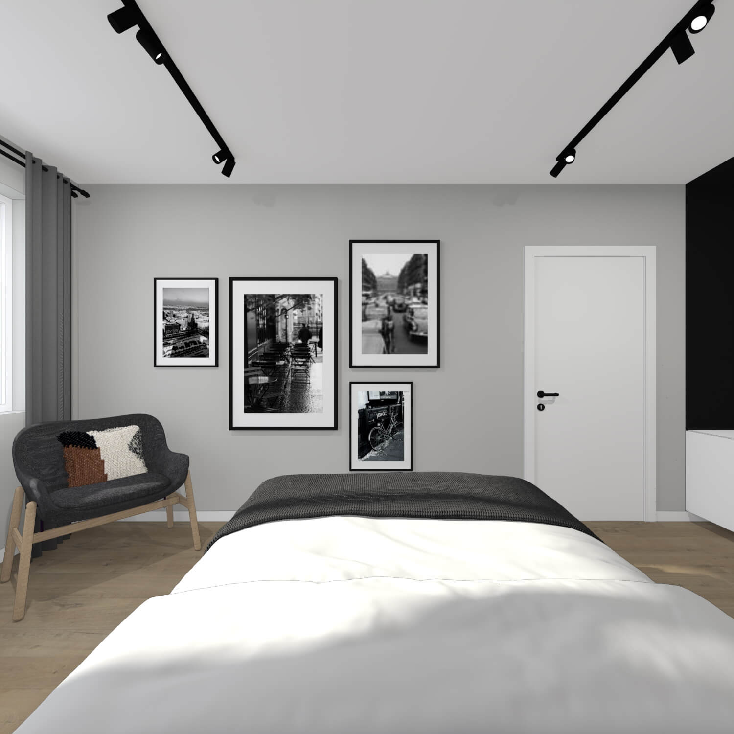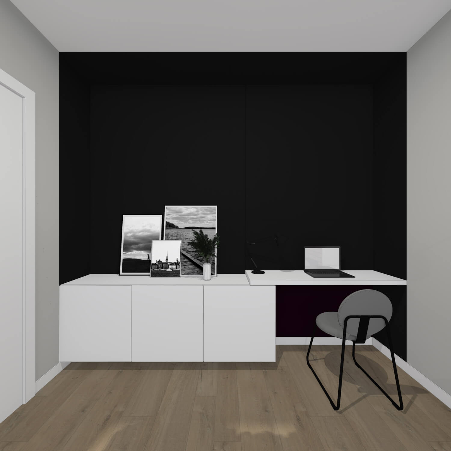 Kompleksowy projekt aranżacji wnętrza o powierzchni 99m2, który łączy nowoczesny design z industrialnymi akcentami. Realizacja objęła projekt salonu z aneksem kuchennym, pokoju dla syna oraz łazienki.