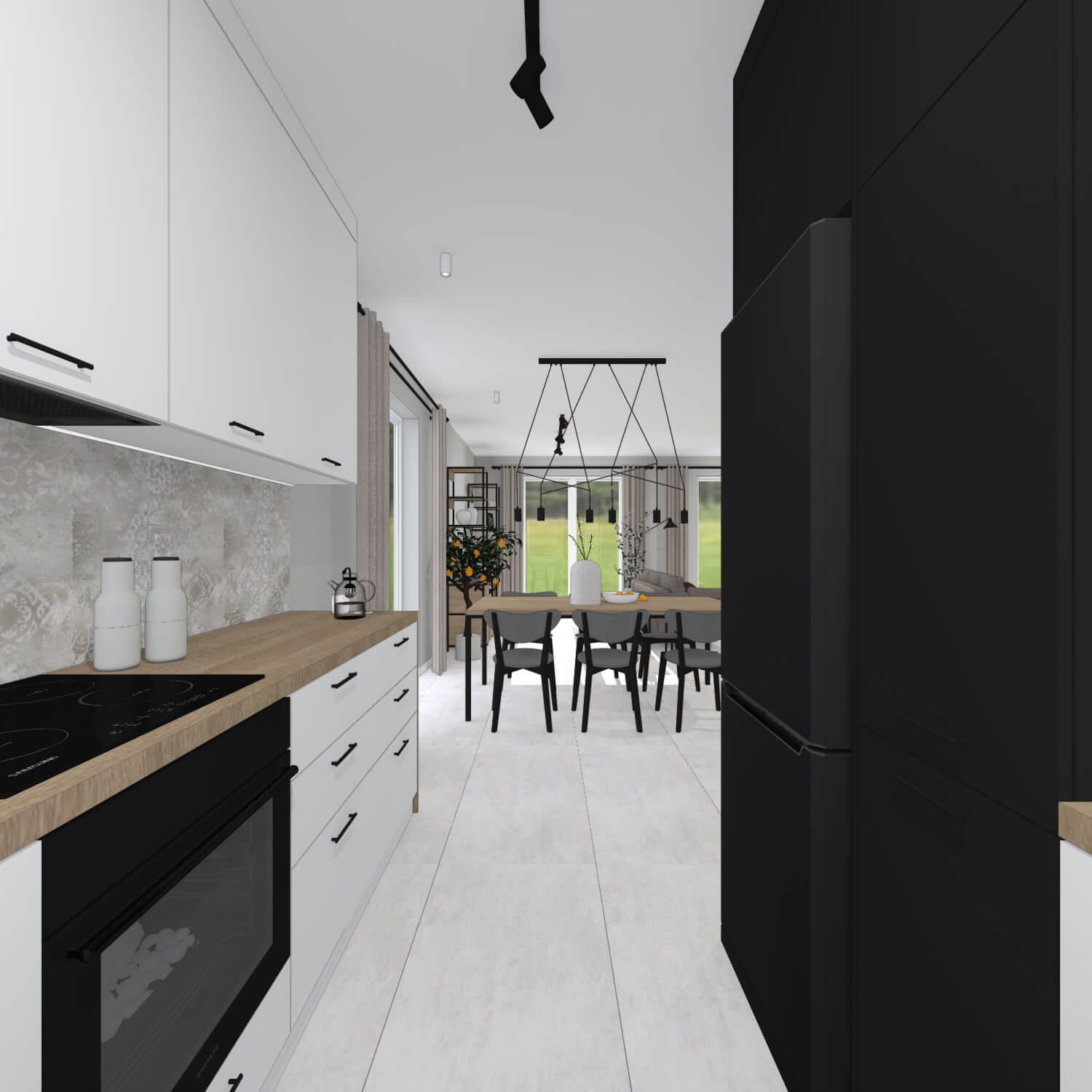 Projekt stworzył spójną, funkcjonalną i stylową przestrzeń, idealnie dopasowaną do potrzeb domowników.