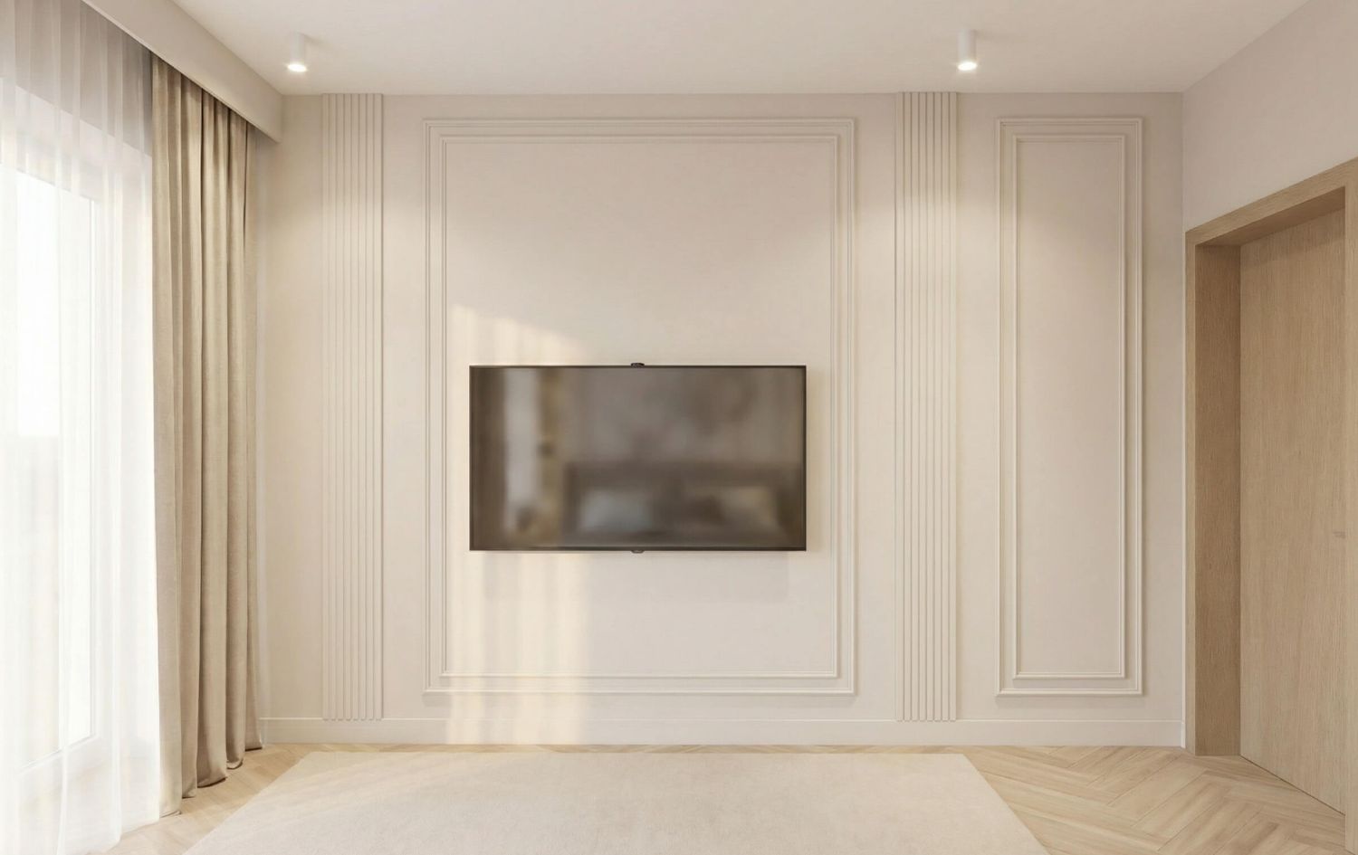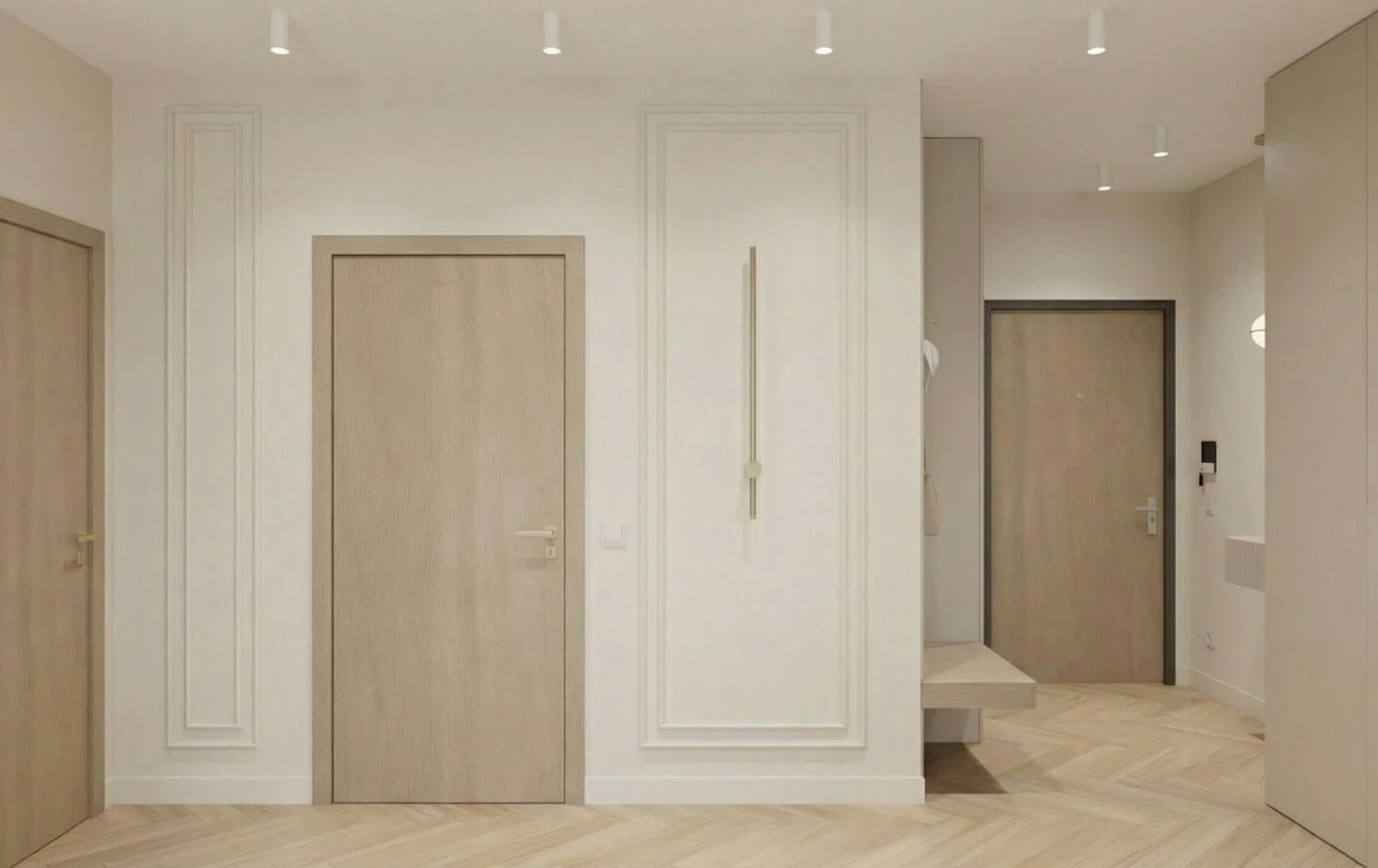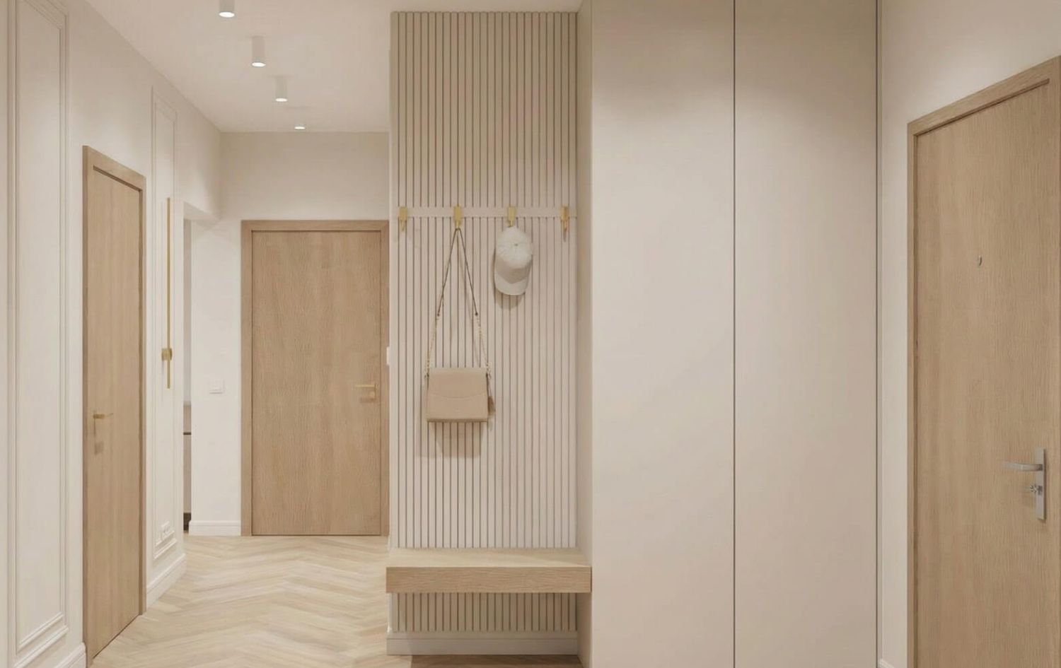 - Strefa Dzienna z Lamelem: Salon został zaprojektowany jako miejsce relaksu, gdzie główną rolę grają pionowe dębowe lamele z ukrytym oświetleniem LED, które nadają wnętrzu głębi i przytulności.