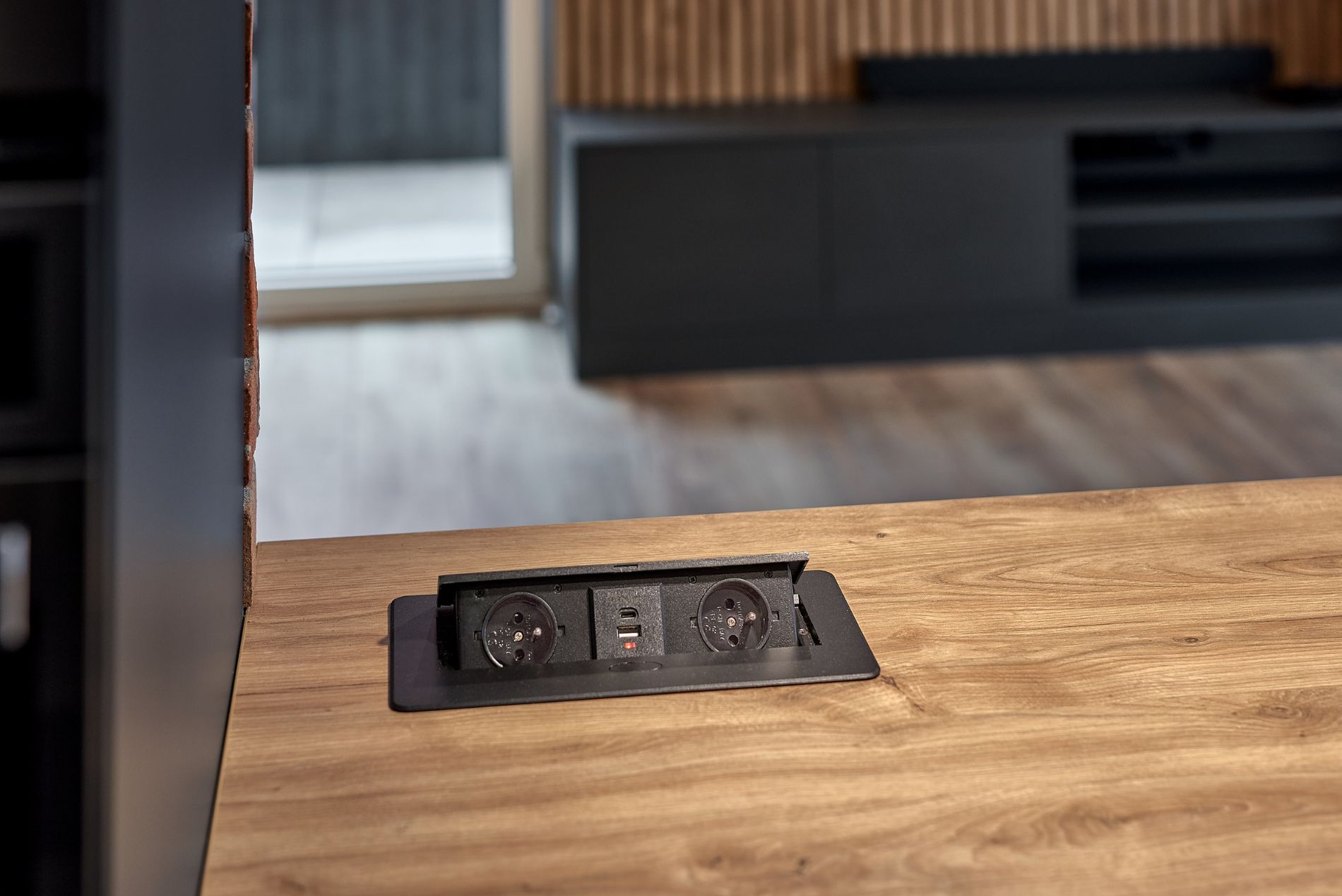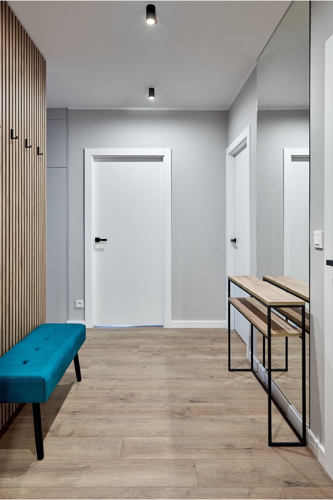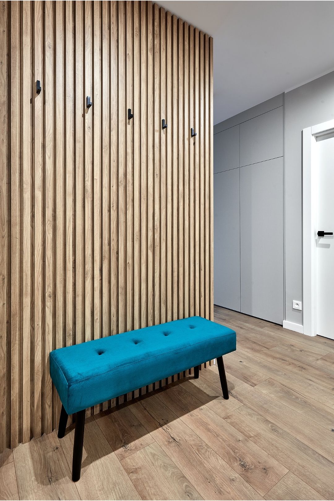 Projekt apartamentu, w którym surowość stylu industrialnego łączy się z ciepłem i funkcjonalnością nowoczesnego minimalizmu. Wnętrza charakteryzują się harmonijnym połączeniem różnorodnych faktur i materiałów, takich jak naturalne drewno, surowa cegła, szare tekstylia oraz czarne, matowe detale. Całość tworzy przytulną i spójną przestrzeń, idealną do życia w miejskim stylu. Projekt objął kompleksowe wyposażenie i aranżację salonu z jadalnią oraz korytarza.
